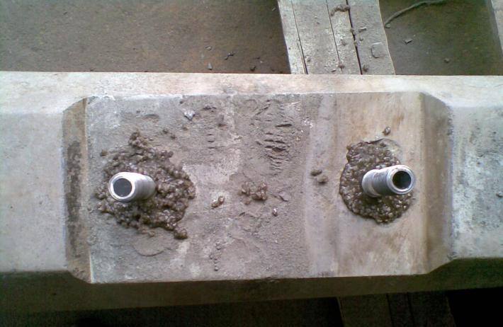 3.灌漿后應盡快旋轉插入絕緣螺旋道釘,使圓臺落在錨固架定位板上,并注意扶直。