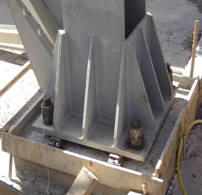 2、鋼結(jié)構(gòu)(如鋼軌、鋼架、鋼柱等)與基礎(chǔ)固接的灌注。