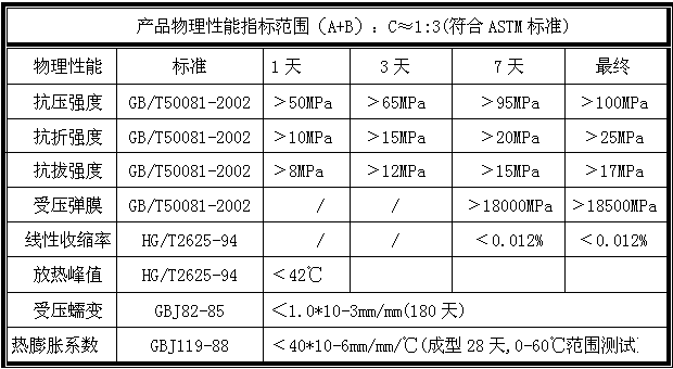 1、高強(qiáng)、早強(qiáng):可提供大大優(yōu)于水泥基材料的抗壓、粘結(jié)等力學(xué)性能,更高的早期強(qiáng)度。