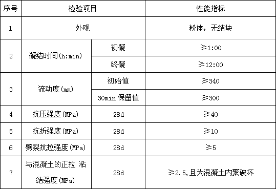 補(bǔ)縫專用漿料是一種以高強(qiáng)度水泥、聚羧酸類超塑化劑、多元礦物質(zhì)材料為主要改性組分的水泥基灌漿材料,具有流動(dòng)性好、微膨脹、有一定韌性、與混凝土粘結(jié)力強(qiáng)、防腐耐久的特點(diǎn),適用于混凝土結(jié)構(gòu)裂縫寬度大于3mm以上裂縫的灌注修補(bǔ)及外包鋼加固等。